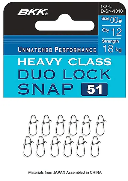 BKK Duolock Snap-51 er produsert av høykvalitets rustfritt stål for å unngå rust. En superenkel, men supersterk hempe for å enkelt bytte hva du har i enden av snøret.