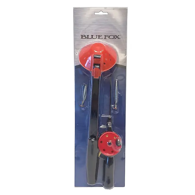 Isfiskesett Blue Fox med isøse, sene og pilk gir deg et enkelt sett med lavt prispunkt. Klar-ferdig-fisk. Inneholder en 33cm pilkestikke str. 50 med 9g/40mm pimpel til lett fiske og abborfiske.