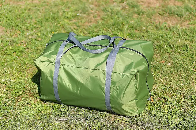 Teltduken er behandlet med en flammehemmende behandling. Glassfiberstenger.