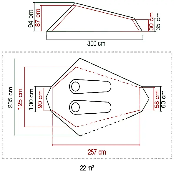 - Takhøyde utvendig: 82 cm (på det høyeste).