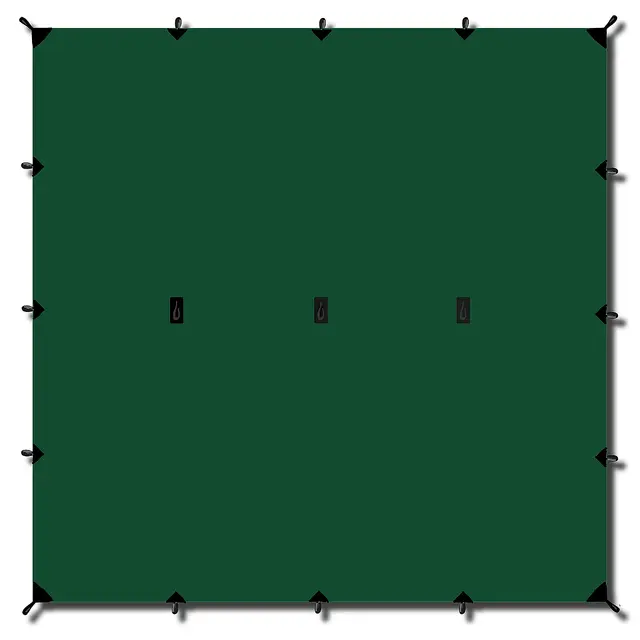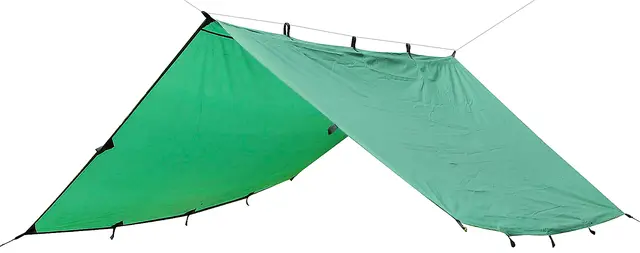 Regn og vindtett duk med hele 19 solide hemper, tau og plugger. Teipede sømmer.