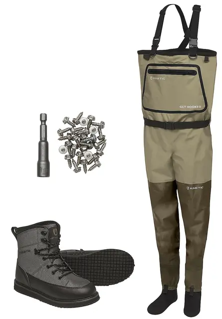 Kinetic Drygaiter II St. Foot – Ultralette og komfortable vadere fra Kinetic. Her får du en stabil og lett vadebukse til en rimelig penge. Disse vanntette vaderne kombinerer en lett overdel med en 100% vanntett og pustende membran. Denne holder deg tørr og slipper ut fukt, over og under vann. Takket være et sterkt ytterstoff, vil vaderne bli fleksible og holde i flere sesonger. Gode grusbeskyttere.