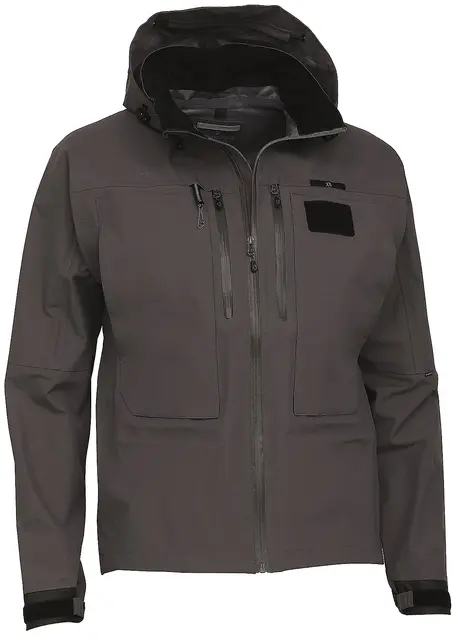 Vadejakken har også justerbar hette, D-ring på ryggen for håvfeste, integrert retraktor for verktøy, Cordura verktøyfeste og elastiske mansjetter med borrelåsjustering.