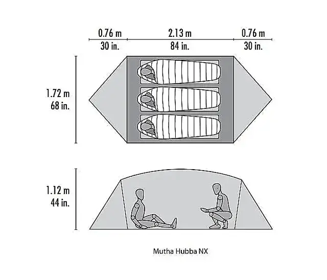 Mutha Hubba passer til 3 voksne, men er lettere enn mange 2-manns telt. Kryssende stag gir stabilitet i sterk vind.