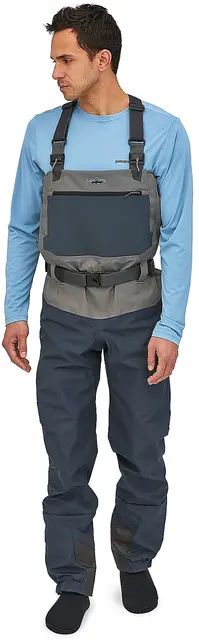 Patagonia M`s Swiftcurrent Waders er allsidig, vanntette, pustende vadere. Vaderen har midjemontert EZ-lock seler så du raskt kan justere den fra bryst til midjen. Vaderen har en vanntett innvendig lomme, og brystlomme.