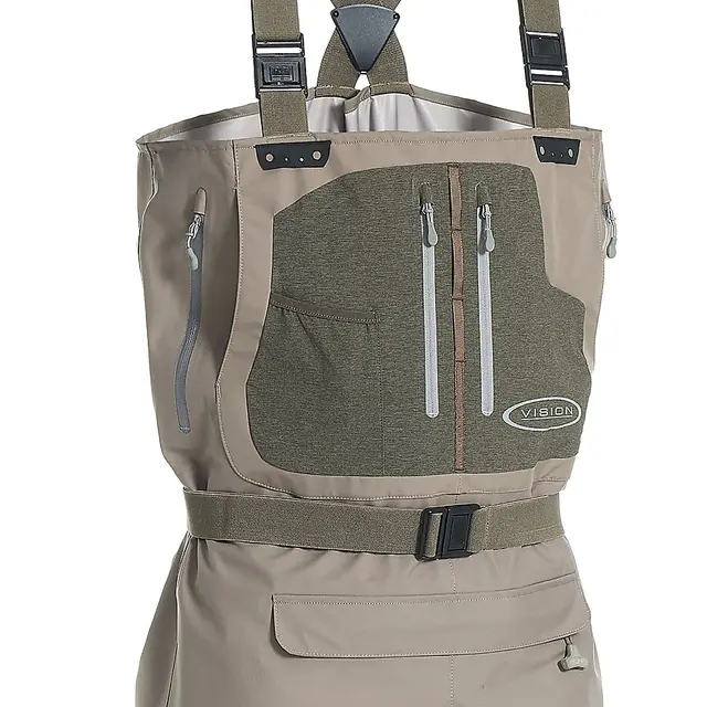Vision Tool Relief vadebuksen har en veldig behagelig horisontal avlastningsglidelås for de pressende øyeblikkene når naturen kaller. Vadebuksen har mange lommer og nøye gjennomtenkte funksjoner for forskjellig tilbehør. Den strekkbare brystlommen i flere lag har en behagelig håndvarmertunnel.